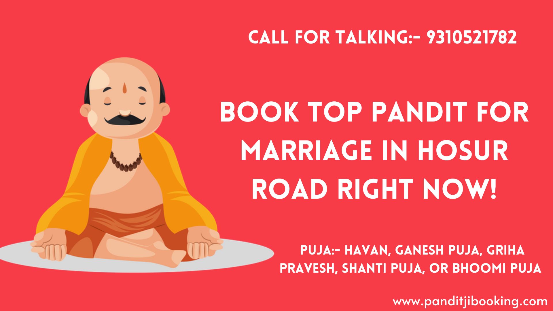 Searching for qualified Hindi pandits to lead marriage rituals in Hosur Road? As a top priest booking platform, panditjibooking.com offers experienced Hindu Brahmins well-versed in conducting customized puja ceremonies in Hindi for your special day.