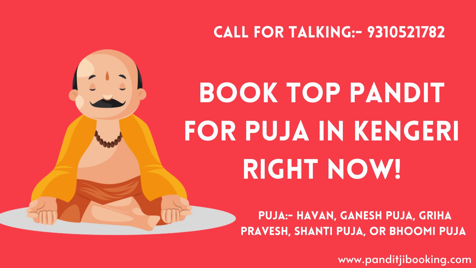 We have a special offer for you. Several options are available if you are looking for a Pandit for Puja in Kengeri. You can contact Book Online Pandit Ji at 9310521782 or Arya Samaj Pandit Ji at 9310521782.