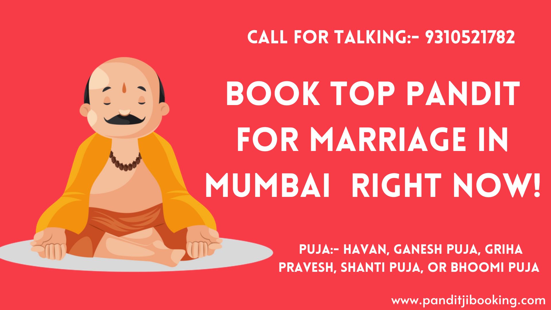 We have a special offer for you. If you are looking for a Pandit for Marriage in Mumbai, there are several options available. You can contact Book Online Pandit Ji at 9310521782 or Arya Samaj Pandit Ji at 9310521782.